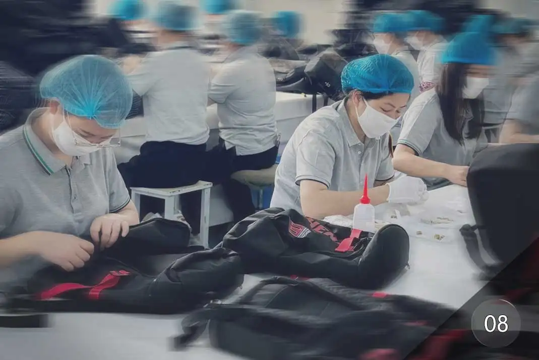 | Stitching | Press Logo | QC Testing | Package | Shipping |